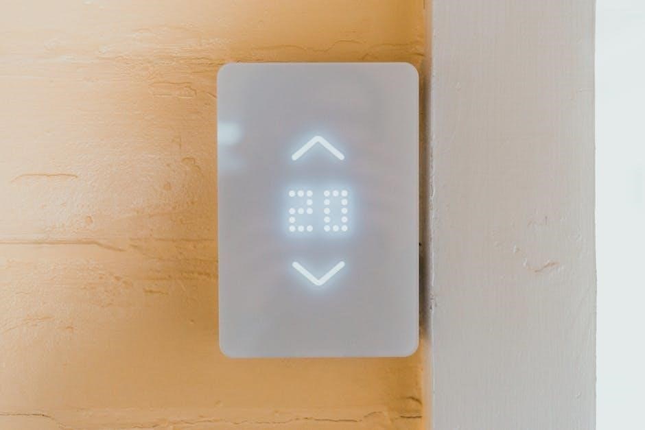 Within the app, select “Add Device” and follow the on-screen instructions to put the thermostat into pairing mode. The app will guide you through entering your Wi-Fi credentials. Once connected, the thermostat will display a Wi-Fi icon, confirming successful connection. This enables remote control and access to advanced features via the Honeywell Home platform.
